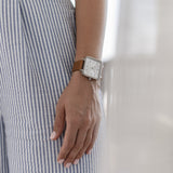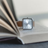 A square timepiece for those slightly different moments. Brushed finish and rounded angles give off a softer looking square case, also making it gentle on the wrist. Numeric print marking ensures functionality, making it a timeless piece.