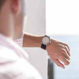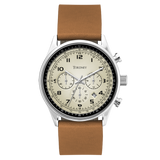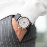 A chronograph for posh adventurer. For an effortless dress x sport look, the case features mix of brushed and shiny finishing. On the smoked champagne dial, hour markers are printed with thick ink for improved legibility. The black chapter ring highlights the dial carrying circular patterned sub-dials; while the date window quietly sits between 4 and 5 o'clock.